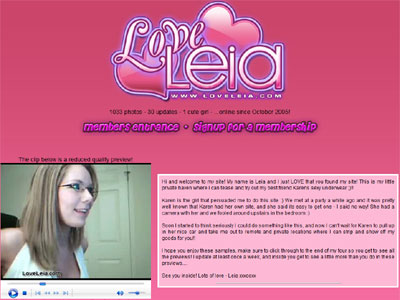 Love Leia has a lot of material to offer for a solo girl site. Her updates are slow in coming but with so many other girls to check out the site will keep you busy. I would have liked more media options for the videos, but the DVD quality downloads were good enough. If you visit her site and find Leia a hottie, a membership won't be a bad idea.