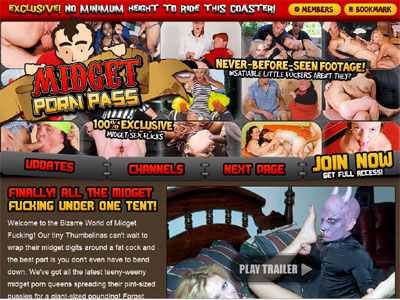 The Midget Porn Pass sounds like a network, but that ins't exactly what it is. The midget porn you'll find in its library is all exclusive and at the time of my visit totals 54+ videos and more than 31+ picture galleries. These are their unique, originally produced materials and they make up the core of the site's offering. There is a larger network though: as a bonus you get access to over 29 Midget-porn DVDs and various other bonus sites and streaming video channels.