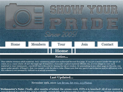 Show Your Pride comes up a little short I think. It only has galleries, whose photographs aren't all that large, and it only keeps 24 sets available at any time. The Bad Puppy access is a nice touch, and adds a lot of gay porn to the equation, and probably makes the site worthwhile. Without that bonus, it would be a pass, though.