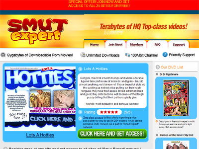 Smut Expert is a big network of average quality sites with average, mostly dated DVD scenes. It's not on the top of anyone's list, but it can still offer a good time to users; however, the price point is about the same as what you'd pay at much higher quality networks, and for that reason I think I'd advise you to skip over this offer and try the next. We've reviewed some great networks and you can start there.