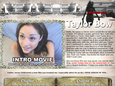 I think Taylor Bow, though not a huge site or an updated one, provides a really original and exciting content. Getting to watch movies of a hot girlfriend fucked by her boyfriend and cummed on is exciting. I can't say I feel sorry for Olivier, though. He got to fuck that girl for two years! The site is worth signing up to it for a month and downloading all his movies, but don't stick around any longer than that. It's pointless, since no new movies are added.